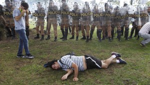 Na ocasião, bombas de gás e balas de borracha foram disparadas por duas horas ininterruptas contra os manifestantes, que protestavam contra uma mudança na previdência dos servidores públicos. Cerca de 1.600 policiais estavam no local.