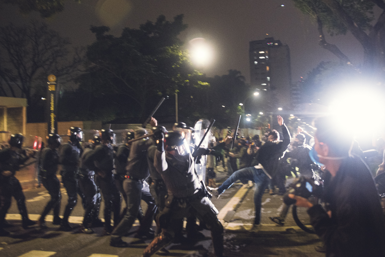 Jovem é acusado de agressão a segurança da linha amarela do Metrô e furto de um capacete. Outros três manifestantes foram detidos durante o protesto, mas vão responder a acusações em liberdade. Fotógrafos relataram terem sido agredidos e terem equipamentos quebrados por seguranças da concessionária ViaQuatro.