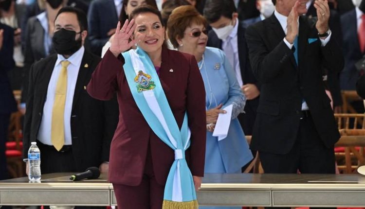 Con la frase al unísono del público de “¡sí se pudo!”, Xiomara Castro, subió al estrado principal para recibir la banda como nueva presidenta.